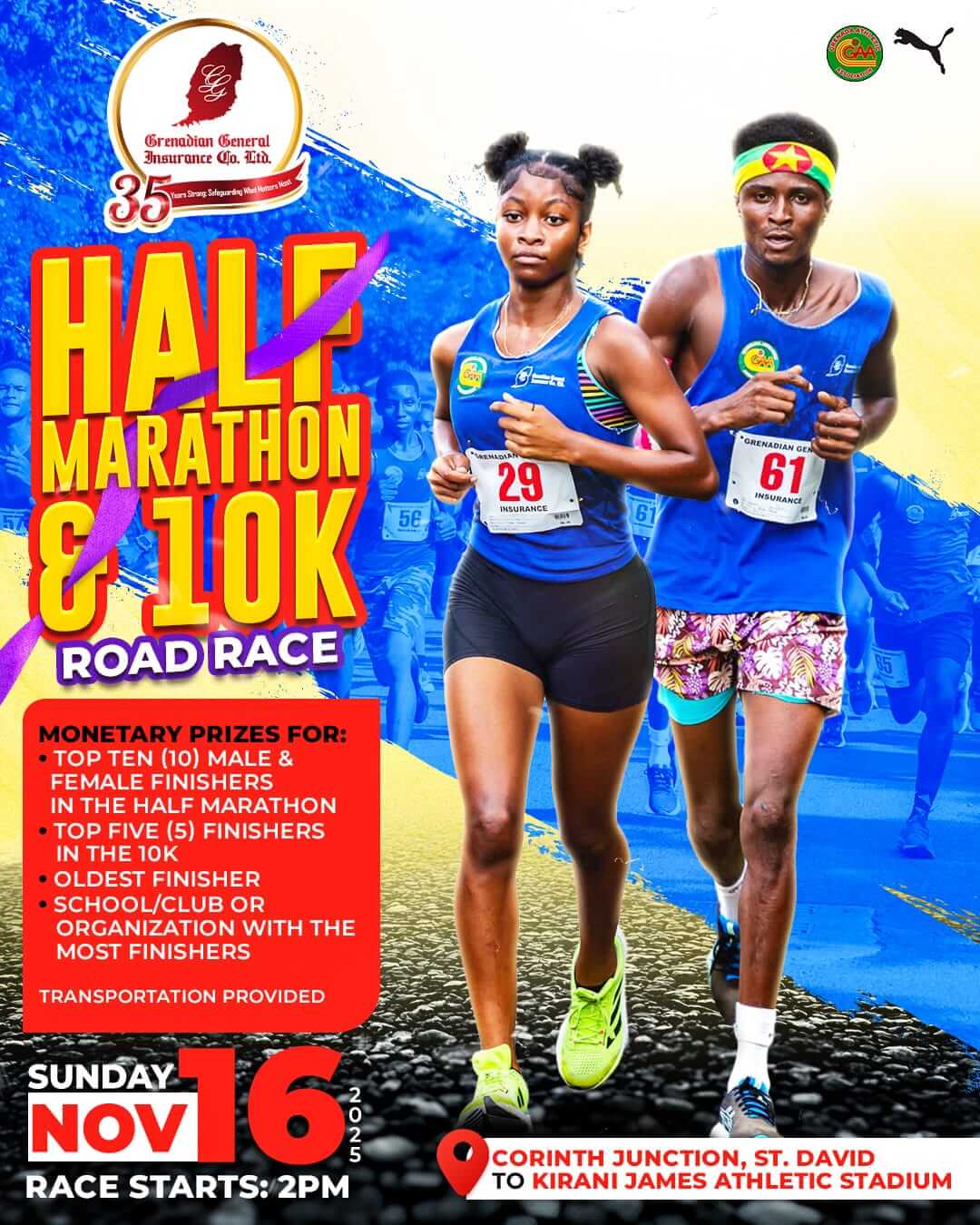 | Event: | Grenadian General 10k & 1/2 Marathon |